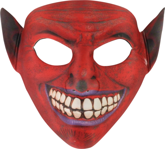 Denne uhyggelige djævelmaske i tekstil giver din udklædning et autentisk look. Takket være den behagelige elastik tager du den nemt af og på, så den er ideel til både børn og voksne. Perfekt til karnevalsfester, temafester og Halloween-aftener.