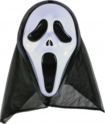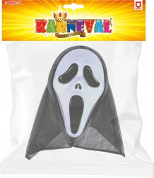 Uhyggelig spøgelsesmaske inspireret af det ikoniske Scream-look, der giver dit kostume den helt rigtige gyserstemning. Ideel til maskebal, fester og Halloween – nem at bruge og med en øjeblikkelig uhyggelig effekt.
