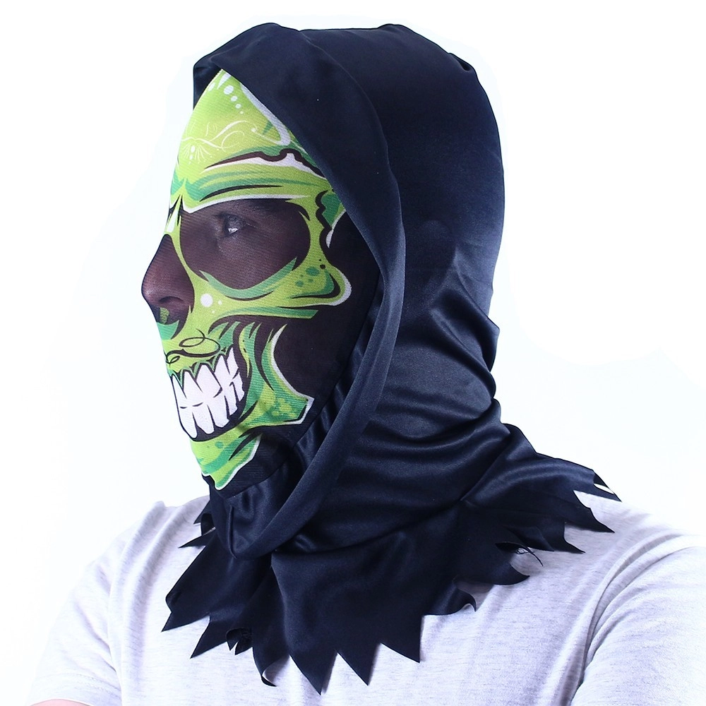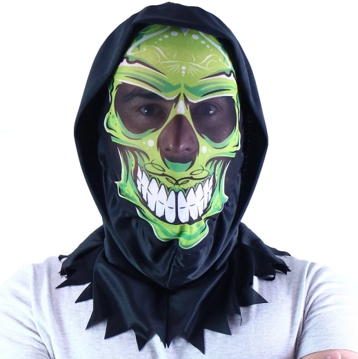 Skab et uforglemmeligt kostume med denne tekstilmaske med skeletmotiv, der fanger opmærksomheden med det samme. Det lette og åndbare materiale sikrer komfort selv ved længere tids brug, så den er perfekt til Halloweenfester, fastelavn eller cosplay.
