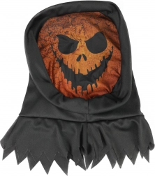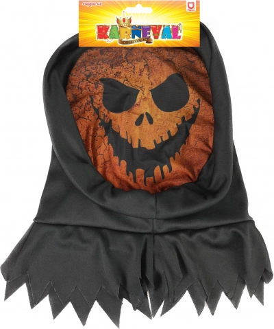 Skab et perfekt skræmmende look med denne orange græskarmaske i behageligt tekstil. Den integrerede hætte og takkede kanter forstærker halloweenstemningen, så du ikke går ubemærket hen til nogen fest.