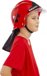 Denne røde børnebrandhjelm er et fremragende tilbehør til den lille helt’s kostume. Den lette plastkonstruktion sikrer behagelig brug, mens den markante farve og det autentiske udseende gør legen som brandmand mere troværdig. Ideel til karneval, børnefødselsdage eller daglig leg derhjemme.
