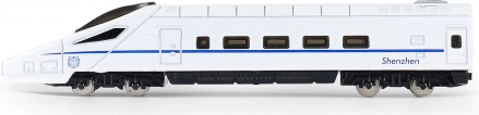 Nyd realistisk kørsel med det kompakte metalhøjhastighedstog, som udmærker sig ved detaljeret udførelse og robust konstruktion. Takket være frihjul bevæger det sig let over plane flader og er et flot supplement til enhver modelsamling.