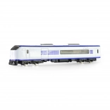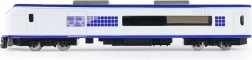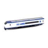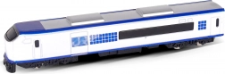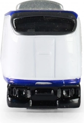 Hvidt design med blå detaljer og rene linjer fremhæver lokomotivets moderne udseende – ideelt til leg og udstilling.