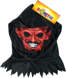 Tekstilmaske til hele hovedet med motiv af en uhyggelig djævel er et must i enhver karnevalssamling. Den er også ideel til Halloween og julearrangementer.