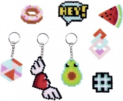 I sættet finder du alt hvad du har brug for at lave smukke nøgleringe: 3 baggrundsskabeloner, strygepapir og 6 forskellige vedhæng. Slip din fantasi løs og lav dine egne farverige tilbehør!