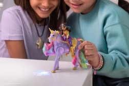Træd ind i fantasien med det charmerende sæt Sophia & Wildstar. Med autentiske figurdetailler, blød regnbuemanke og ægte lyseffekter kan børn genopleve yndlingsscener fra serien og bøgerne. Sophia har 7 bøjepunkter, så du nemt kan placere hende i den aftagelige sadel og fastgøre trensen for en sikker ridetur.