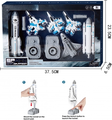 - Rumfærge med tilbagespoling: 10 cm rumfærge, der kan fastgøres til raketten.