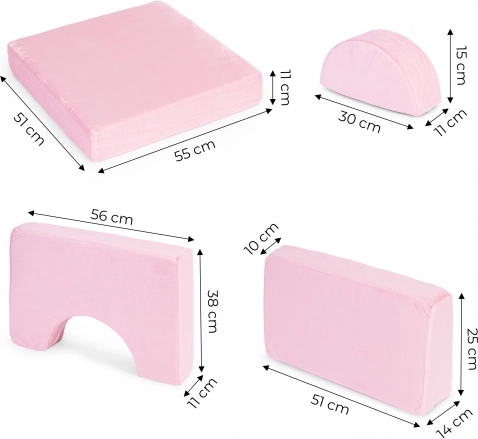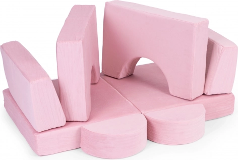 Opdag en smart og sjov løsning til børneværelset. Sættet med 8 skumpuder i forskellige former understøtter kreativ byggeri og udvikler fantasi og motorik. Af modulerne kan du nemt lave en stol, en mini-sofa, en chaiselong eller legeforhindringer – helt efter barnets humør og behov.