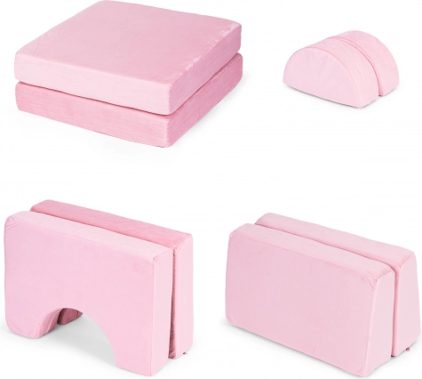 Forskellige pudefomer gør det muligt at arrangere stol, sofa, puf og madras samt bygge legekonstruktioner, der udvikler fantasi og færdigheder.