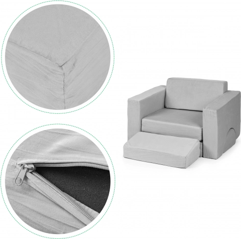 Takket være de lette puder med aftagelige betræk med lynlås holder du møblet rent uden anstrengelse. Det neutrale grå design passer ind på både børneværelset og i legerummet, og materialer af høj kvalitet tåler daglig brug.