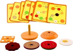 Der medfølger desuden 10 bestillingskort, som illustrerer forskellige burgeropskrifter. Hvert kort er designet, så det er let tilgængeligt for børn og hjælper dem med at følge vejledningen og lave burgere efter anvisningerne. Denne funktion udvikler ikke kun barnets finmotorik, men hjælper også med at lære at skelne farver, former og ingredienser.