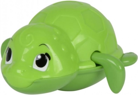 Den grønne skildpadde med tydelig skjold svømmer pålideligt og underholder børn ved hvert bad. Et ideelt alternativ til anden.