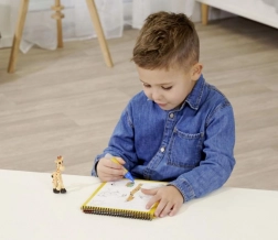 Det praktiske hæfteformat 17 × 19 cm er perfekt til rygsækken, udflugter og venteværelser. I pakken er der desuden en sød giraf-figur, der stimulerer fantasien og temaleg, samt en pensel til flere teknikker med vand.