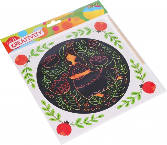 Opdag din kreativitet med vores skrabebillede i me5lene 20x20 cm. I pakken finder du en skraber og et billede, som du kan pynte efter din fantasi.