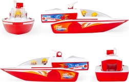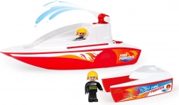 Brandmandsættet BOAZZ bringer en dynamisk vandredningsmission i børnehøjde. Den rød-hvide speedbåd med detaljerede “Fire Fighter”-tryk og den stilfulde katamaran udgør et perfekt makkerpar til redningsaktioner på vandet. Den funktionelle vandkanon gør det muligt at sprøjte rigtigt vand, hvilket øger både sjov og realisme.