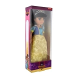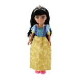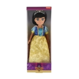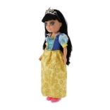 Vi præsenterer en eventyrlig dukke, der betager med sin skønhed og sit detaljerede design. Dukken er 38 cm høj og er klædt i vidunderlige blå-gule kjoler pyntet med blomstermønstre. På hovedet bærer hun en sølvfarvet tiara, som understreger hendes kongelige look. Denne dukke er perfekt til fantasifuld leg og giver masser af muligheder for rollelege. Legetøjet er udstyret med bevægelige lemmer, hvilket muliggør forskellige positurer, og takket være sine mål ligger den godt i små hænder.