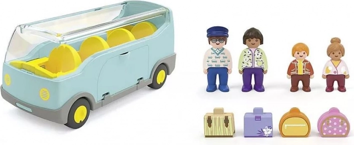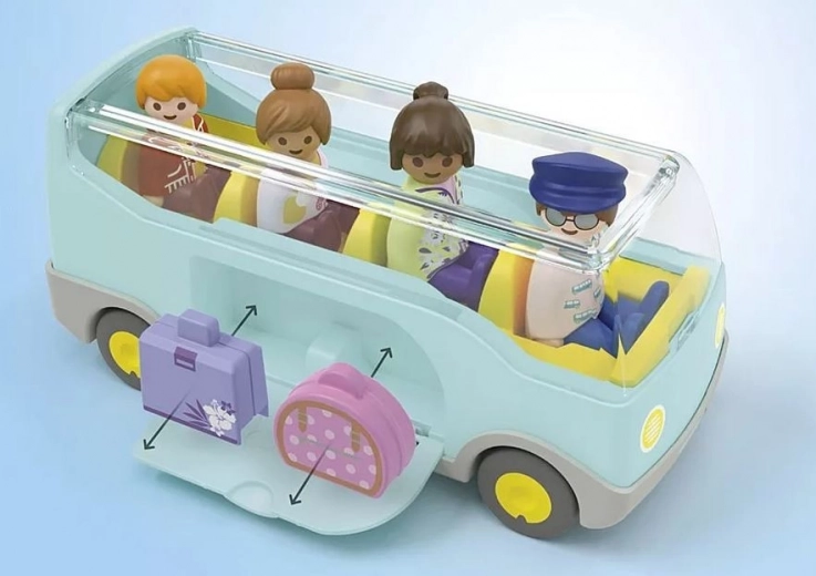 Den robuste turistbus med åbent interiør og fire sæder er ideel til små hænder og fremmer selvstændig leg.