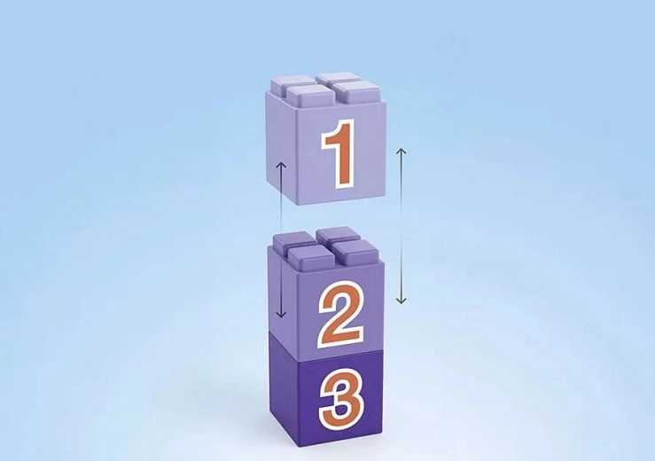 Tre stablelige klodser med tallene 1, 2 og 3 understøtter tidlig matematisk forståelse, sortering og bygning af tårne.