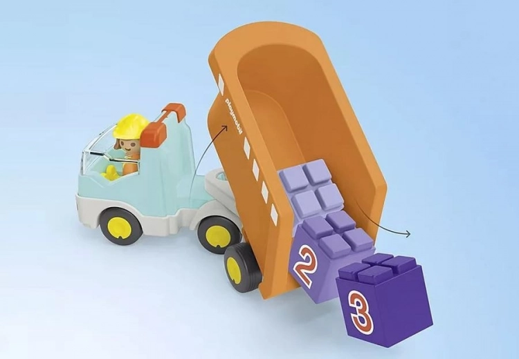 Dette farverige byggesæt begejstrer små chauffører og kommende byggeledere. Børn kan læsse “sten” via den åbne bagende af ladet, tippe indholdet med den vipbare overbygning og gentage den sjove cyklus af på- og aflæsning igen og igen. De tre nummererede klodser (1, 2, 3) udvikler naturligt grundlæggende talforståelse og farvesortering.
