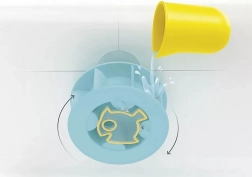 Hæld vand fra det medfølgende krus på hjulet og se vandmøllen snurre. Sjov under hvert bad.