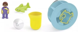 PLAYMOBIL Junior Aqua vandmølle er det ideelle badelegetøj til børn fra tidlig alder. Hæld blot vand på hjulet med det medfølgende krus, og se det snurre og skabe en sjov hvirvel. Takket være den praktiske sugekop sidder den stabilt på badekarets kant eller på glatte fliser.