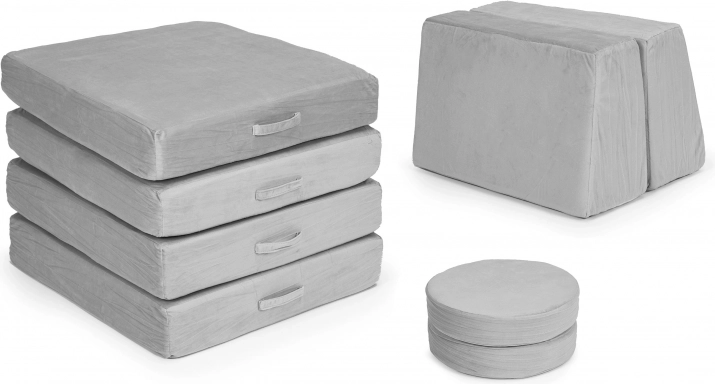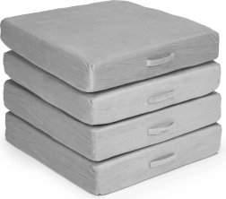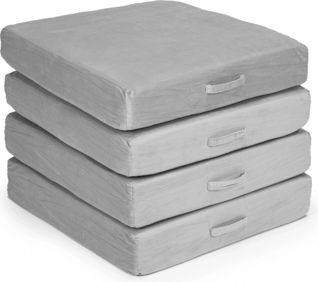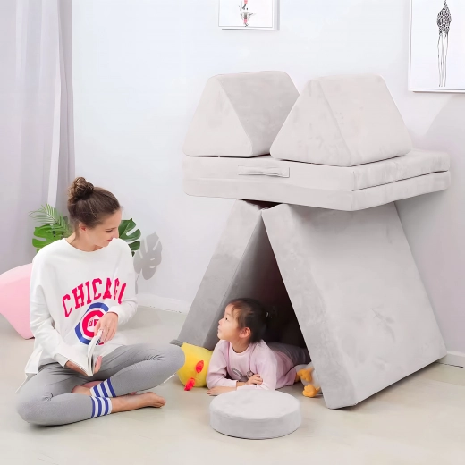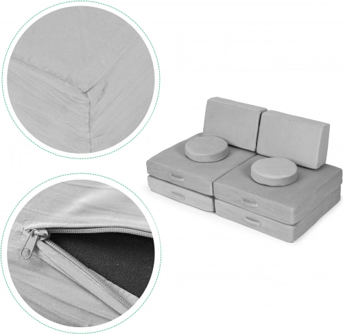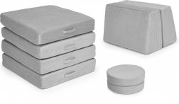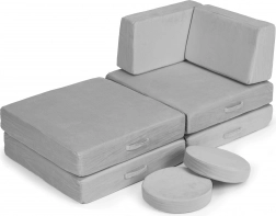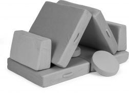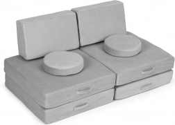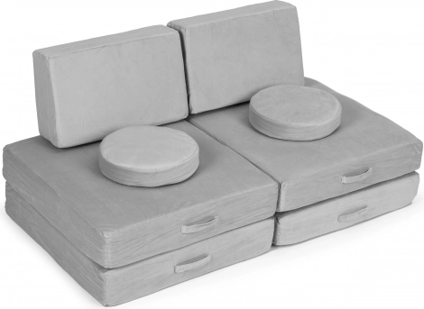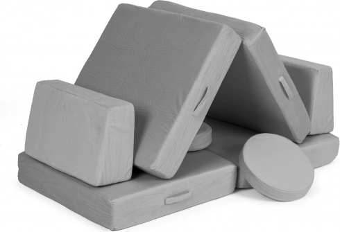 Takket være lette elementer med håndtag kan børnene nemt selv flytte og bygge møblet. Aftagelige betræk med lynlås gør vedligeholdelsen nem – tag dem blot af og vask dem. Det neutrale grå design passer perfekt i moderne interiører og tåler daglig brug.