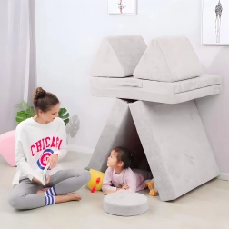 Otte forskellige elementer gør det muligt for børn at skabe nye opstillinger hver dag – fra sofa over hule til en behagelig læseplads. Udvikler kreativitet og DIY-færdigheder.