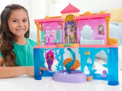 Oplev den magiske verden af Disney Prinsesse Ariel med et to-etagers palads, der forbinder det jordiske og det undervandske rige. Børn kan udforske 6 legezoner, roterende dansegulv, spisestue, soveværelse og et undervandsbassin med bobleknap. Sættet inkluderer dukken Ariel med forvandlingslook – en lyserød kjole og en hale, der skifter farve i varmt vand – for endeløse historier og kreativ leg.