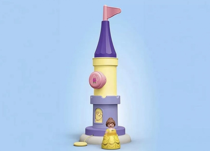 Opdag det magiske tårn med spilledåse, som afspiller en melodi inspireret af filmen Skønheden og Udyret, mens Belle og hendes venner danser i vinduerne. Bevæg dig ind i en verden af magi og fantasi!