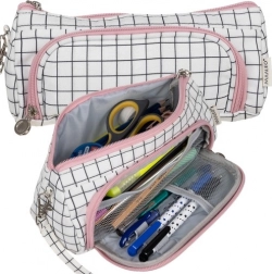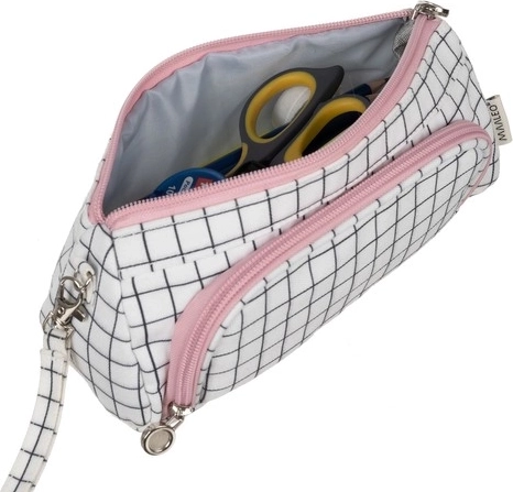 For endnu bedre organisering er penalhuset udstyret med en skillevæg med net, som adskiller hovedrummet og frontklappen. Frontklappen har sin egen lynlås, hvilket giver hurtig adgang til indholdet uden at åbne hoveddelen. Tilstedeværelsen af fem elastiske holdere sikrer let adgang til ofte brugte redskaber.