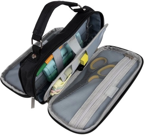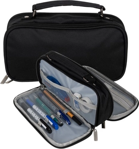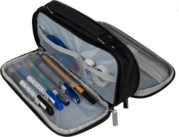 Adskil skriveredskaber, tilbehør og elektronik. To-vejs lynlåse giver hurtig og bekvem åbning fra begge sider.