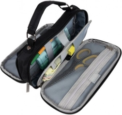 Netlommer, elastiske holdere og en aftagelig “flap” med velcro holder alting overskueligt og på plads.