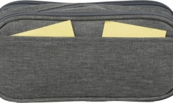 Stilfuld og praktisk trekammer penalhus er designet til at tilbyde tilstrækkelig plads til alle dine skole- eller kontorartikler. Hvert kammer er lukket med lynlås, hvilket sikrer hurtig og nem adgang til indholdet. Det største centrale kammer er ideelt til komplette sæt af farveblyanter eller kuglepenne, mens sidelommerne giver plads til småting.