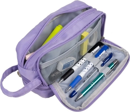 Penalhus i slidstærk nylon i en klar lilla farve, der kombinerer æstetik med praktisk anvendelse. Nem at håndtere takket være det komfortable håndtag.