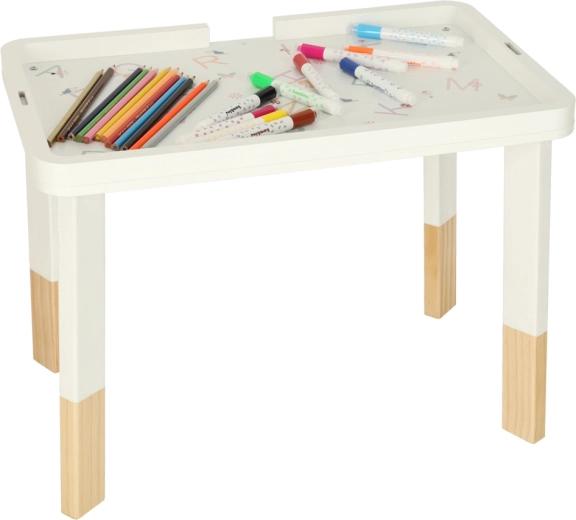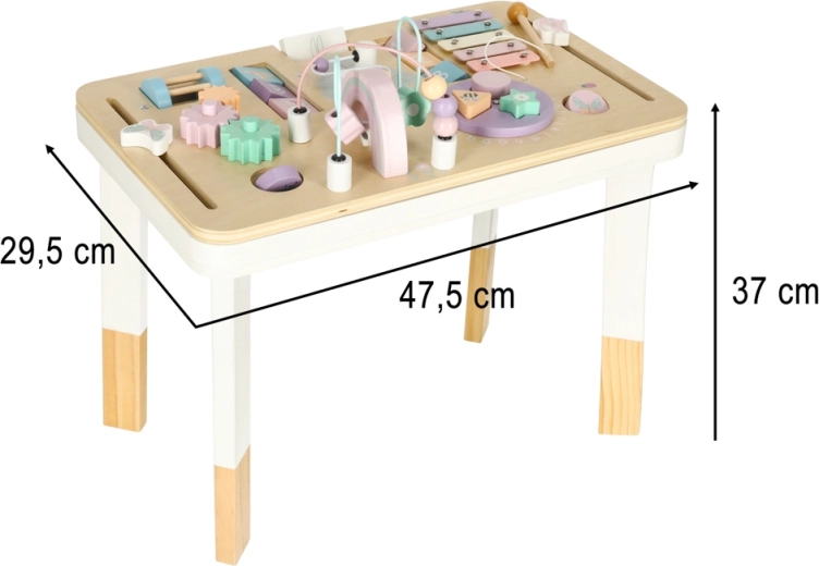 Takket være den overskuelige legeflade skifter børn let mellem aktiviteter, styrker deres selvstændighed og lærer gennem leg. Det pastelfarvede design passer i ethvert børneværelse, og takket være de ikke-giftige farver er produktet skånsomt og sikkert for de mindste.