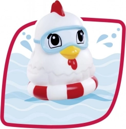 De bløde vinylfigurer ligger godt i hånden og er ideelle til vand. Kyllingen flyder i en badering og indbyder til endnu mere leg i badekarret.