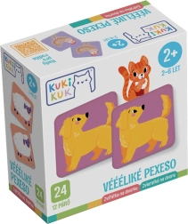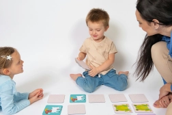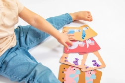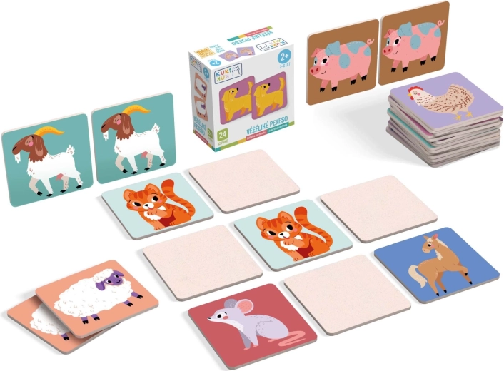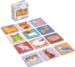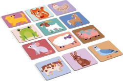 Takket være den kraftige 2 mm karton holder kortene formen og tåler hyppig leg. Størrelsen 11 × 11 cm gør dem nemme for små børn at håndtere. Spillet kan tilpasses alderen: begynd med få par og udvid gradvist til alle 12 par.