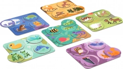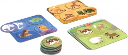 Dette populære spil introducerer på en venlig måde småbørn til 24 dyr og deres levesteder – hjemme, i skoven, på engen, ved dammen og i trækronerne. Takket være de store brikker og de robuste plader i 2 mm karton er spillet let at håndtere og sikkert for små børn. I pakken finder du også tips og spilvarianter til forældre og undervisere.