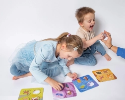 Spil klassisk lotto/bingo eller enklere kooperative varianter. Spillet styrker kommunikation, koncentration og tålmodighed – ideelt til familier og børnehaver.