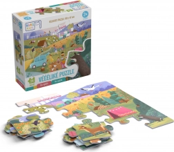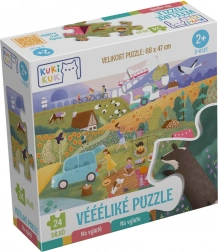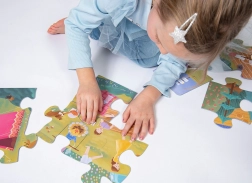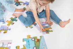 Disse store børnepuslespil består af 24 ekstra store brikker og danner et billede på 675 × 470 mm, når de er lagt. Formen på samlingerne er designet, så kun de rigtige billeddele passer sammen, hvilket hjælper børn med at forstå sammenhænge og styrker deres tålmodighed. Brikkerne er lavet af kvalitetskarton på 2 mm, som tåler selv lidt hårdere håndtering.