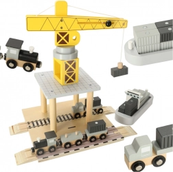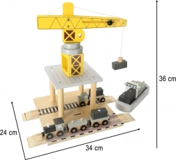 Børn vil elske denne træhavnekran, som giver mulighed for at lege, mens de læsser containere fra skibe til biler og tog. Dette sæt tilbyder mange komponenter, der muliggør forskellige lege scenarier, udvikler fantasi og manuelle færdigheder hos dit barn.
