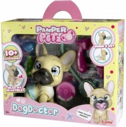 Figur Pamper Petz præsenterer en kollektion af søde kæledyr, der leder efter deres passer. Dette sæt inkluderer en bulldog, der drikker fra en flaske og derefter tisser i en ble, der skifter farve til gul, når den bliver våd. En fantastisk leg for børn, der ønsker at passe deres magiske kæledyr.