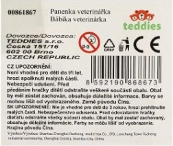 Dyrlæge dukken har en solid krop og dens højde er ca. 11 cm. Børn kan prøve rollen som dyrlæge takket være sættet, som indeholder alt nødvendigt tilbehør til dyrlægepleje - alt hvad de har brug for til at undersøge og helbrede deres plysdyrspatienter.