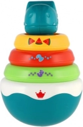 Sød vippende dinosaur med stabelringe glæder børn fra 6 måneder. Når den bevæges, høres en blid bjældelyd, og den farverige pyramide understøtter finmotorik, hånd–øje-koordination og opfattelse af farver og størrelser. Let og holdbar plast, højde 16 cm, i æske.
