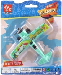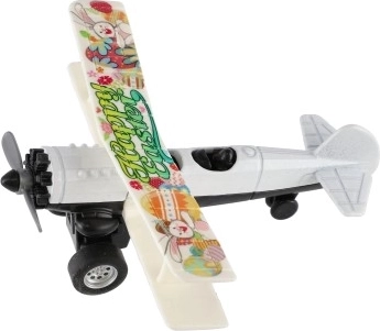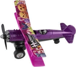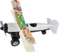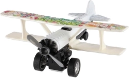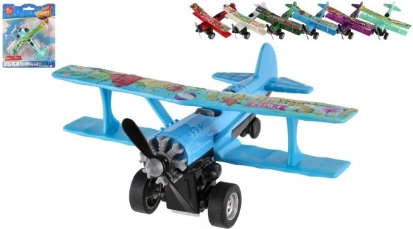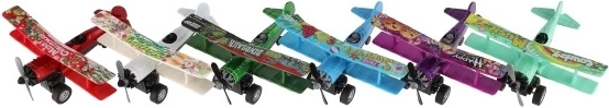 Tryk flyet tilbage og slip – pull-back-mekanismen skyder det frem, og propellen snurrer under kørslen.