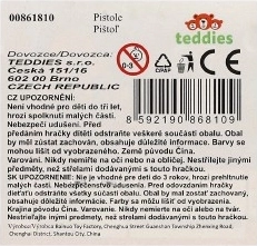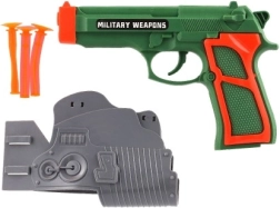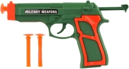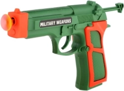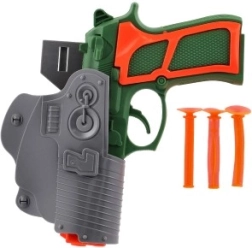 Denne lette plastpistol er ideel til børns lege som politi og specialenheder. Sugekop-pilene fæstner på glatte overflader som mål eller glas, så legen er sikker og samtidig spændende. Takket være de kraftige farver er det ved første øjekast tydeligt, at der er tale om en legeting.