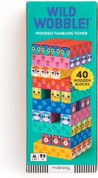 Træspillet WILD WOBBLE i farverigt design med dyremotiver er et ideelt valg til hyggestunder med børn. Målet er forsigtigt at trække klodser ud fra de nederste lag og lægge dem ovenpå uden at tårnet styrter sammen. De enkle regler og den spændingsfyldte dynamik gør det til et skønt familiespil.