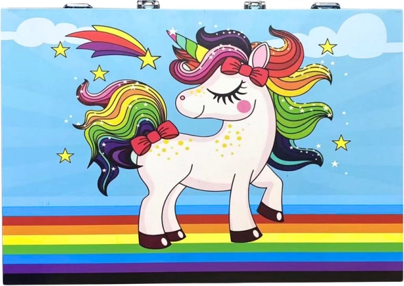 Kunstsæt i etui med enhjørning Blå 150 stk.