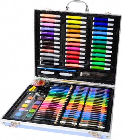 Sættet indeholder op til 150 dele, som opfylder enhver lille kunstners behov. Indeni finder du farvede blyanter til tegning og skitsering, pasteller, der er ideelle til bløde, fine farveovergange, samt maling i forskellige nuancer til ekspressive malerier. Der medfølger også pensler, så barnet kan eksperimentere med forskellige maleteknikker, og blyanter, som er et uundværligt værktøj for enhver kunstner.