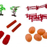 Små træer, hegn og andre plastdele hjælper med at skabe en egen forhistorisk verden og udvikler rolleleg.